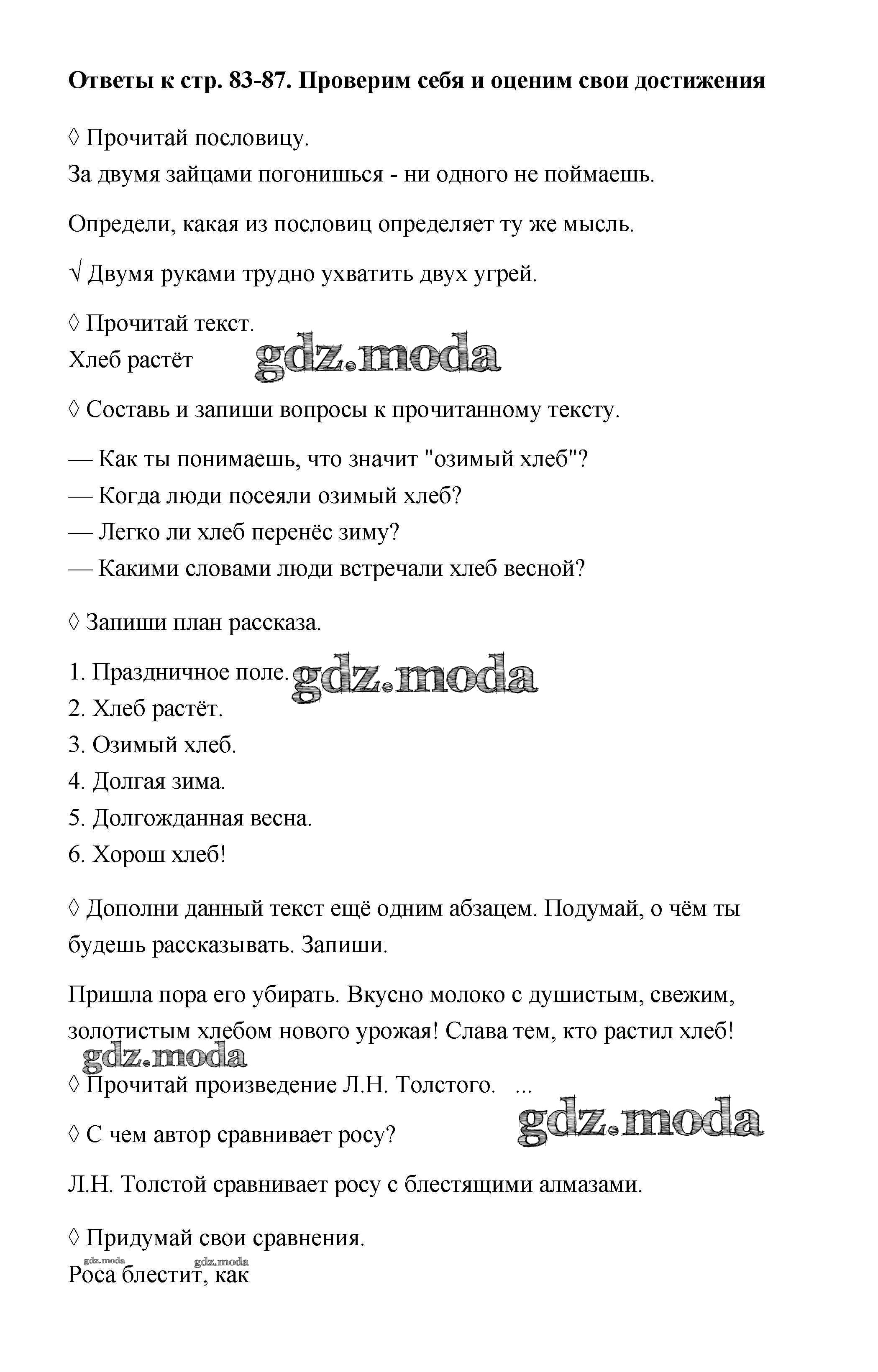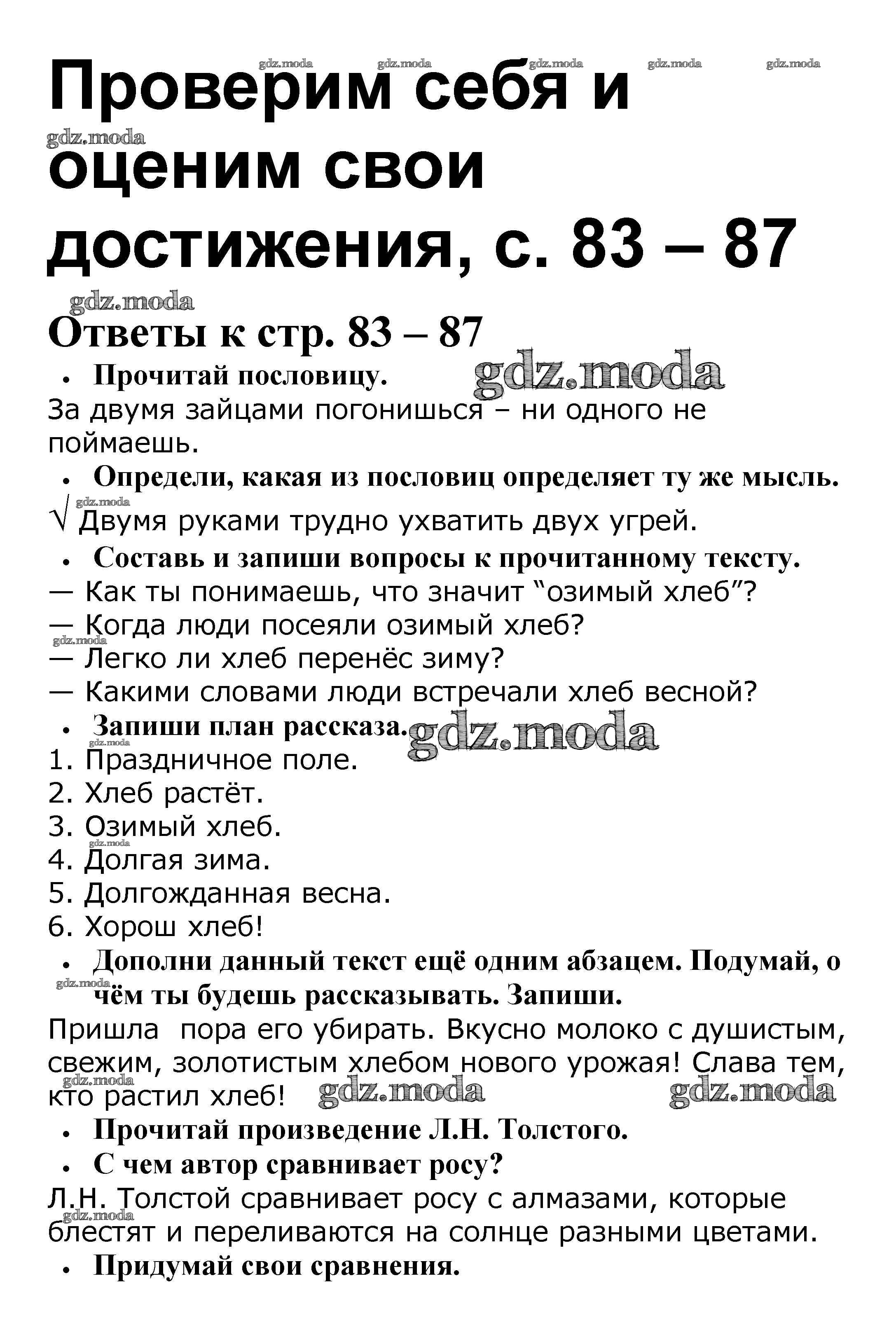 ГДЗ решение к заданию № 83-87 Литературное чтение 4 класс рабочая тетрадь Бойкина М.В. Просвещение 2016 ФГОС бесплатно на гдз.мода!
