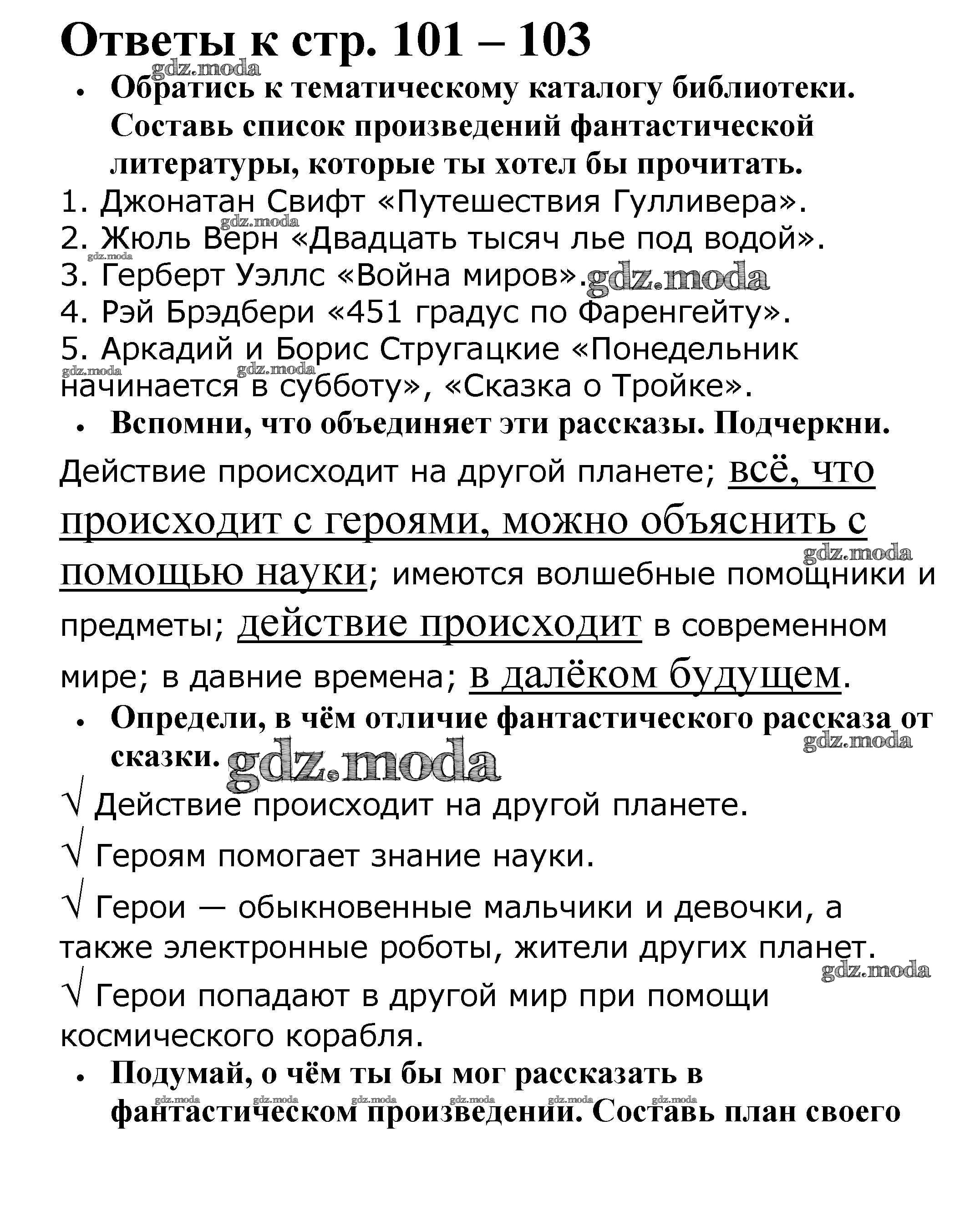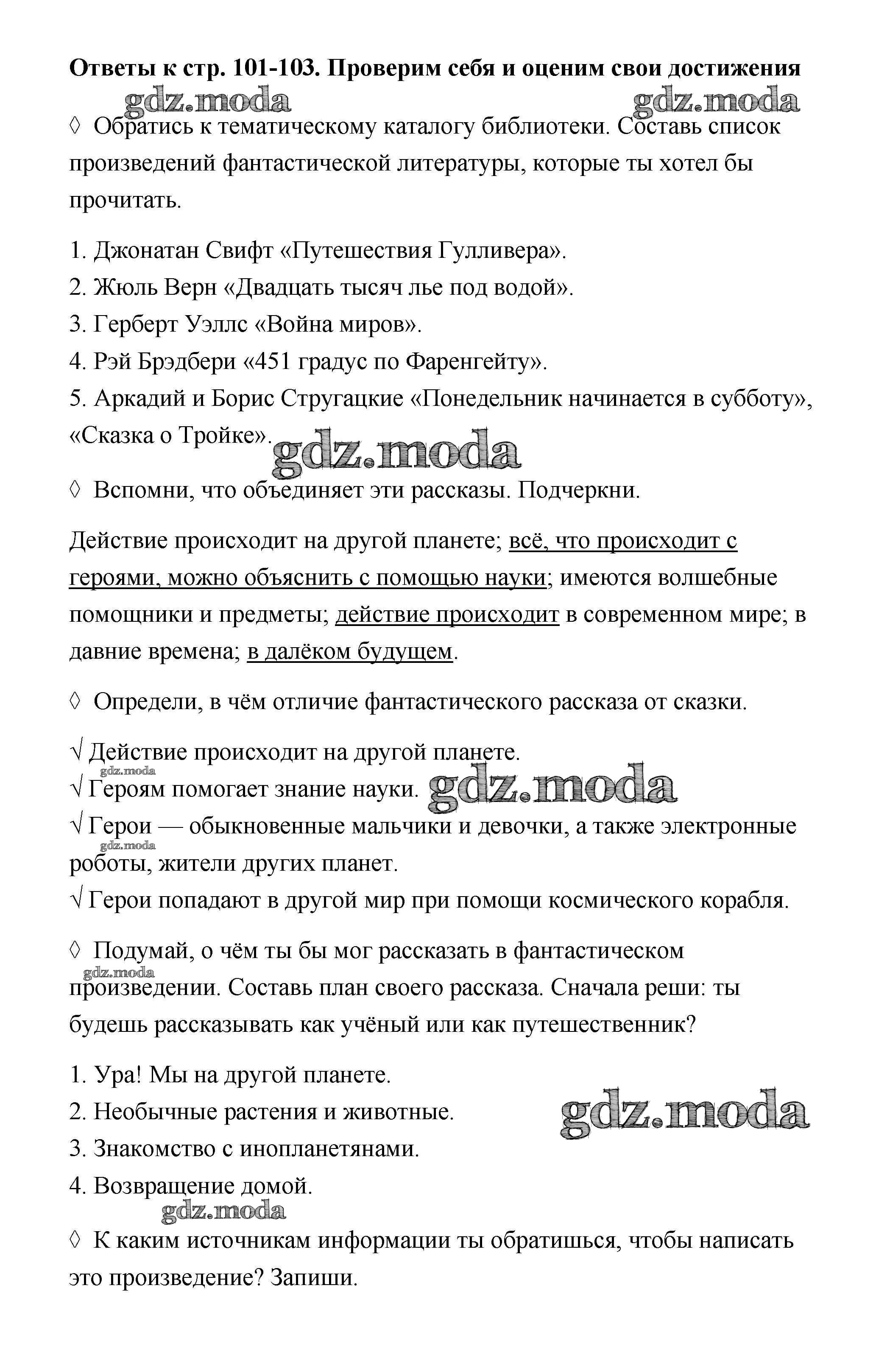 ОТВЕТ на задание № 101-103 Рабочая тетрадь по Литературе 4 класс Бойкина Школа России