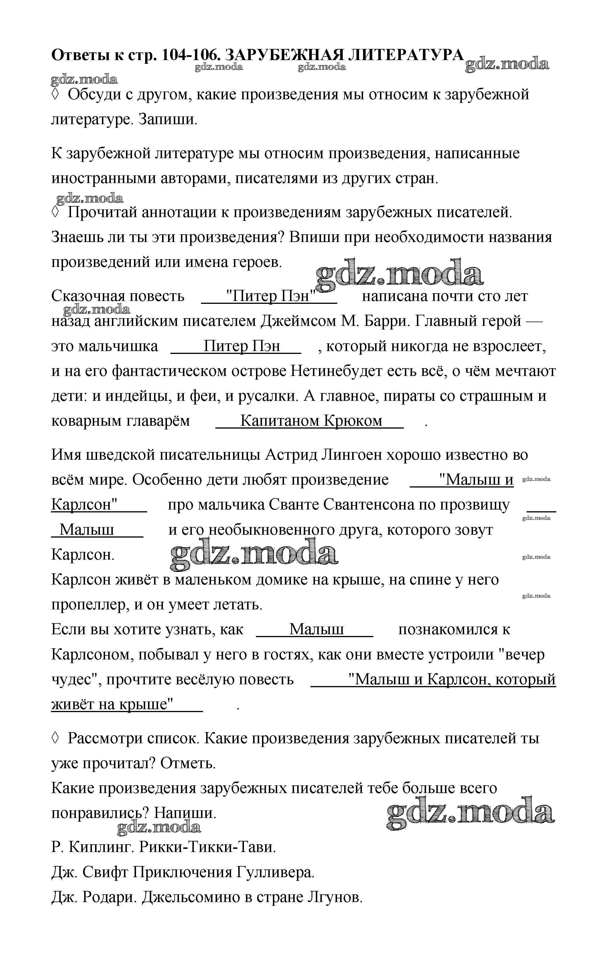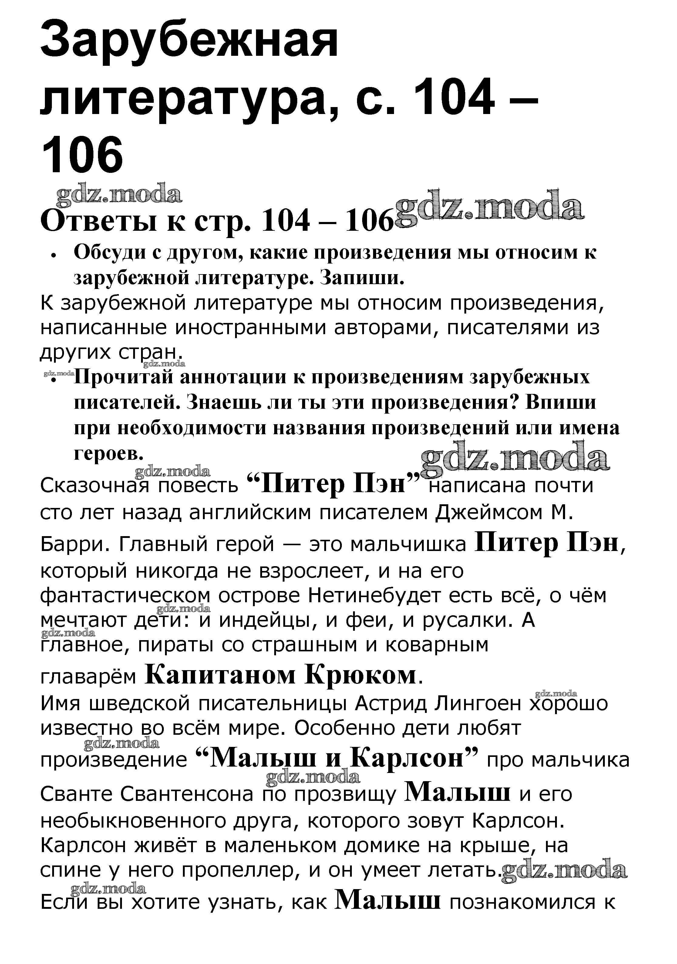 ОТВЕТ на задание № 104-106 Рабочая тетрадь по Литературе 4 класс Бойкина Школа России