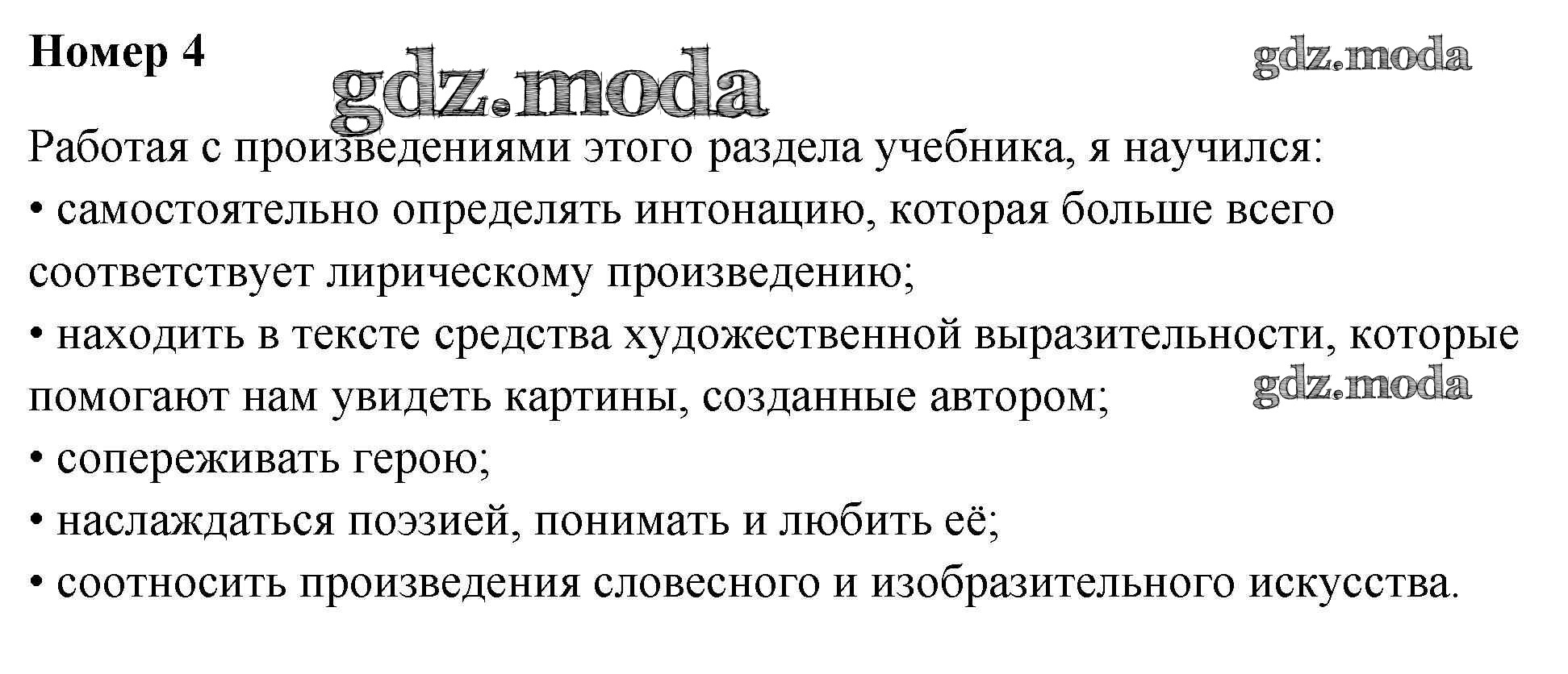 ГДЗ решение к заданию № 4 Литература 4 класс рабочая тетрадь Тихомирова Е.М. Экзамен 2020 Часть 1, Часть 2 ФГОС бесплатно на гдз.мода!