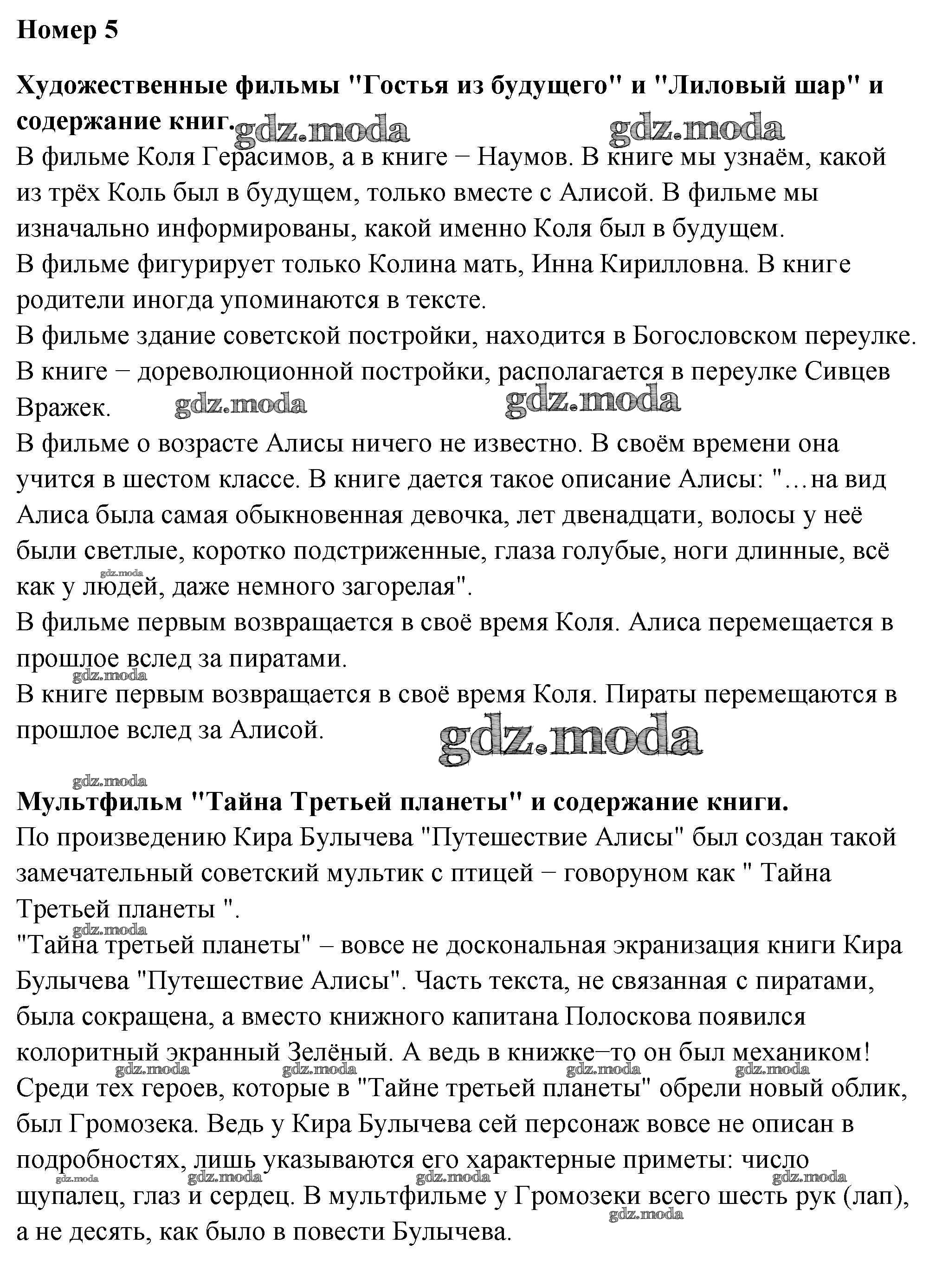 ОТВЕТ на задание № 5 Рабочая тетрадь по Литературе 4 класс Тихомирова УМК