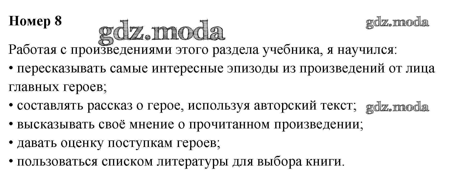 ГДЗ решение к заданию № 8 Литература 4 класс рабочая тетрадь Тихомирова Е.М. Экзамен 2020 Часть 1, Часть 2 ФГОС бесплатно на гдз.мода!