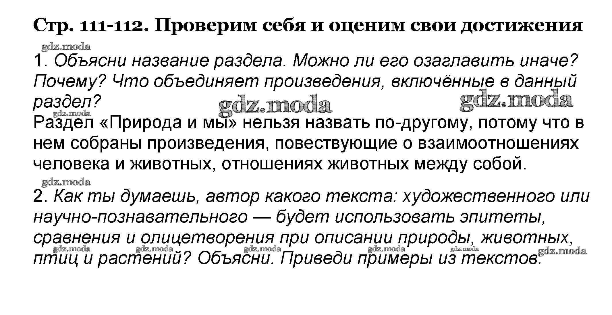 ГДЗ решение к заданию № 111-112 Литературное чтение 4 класс Климанова Л.Ф. Просвещение 2018 Часть 1, Часть 2 ФГОС бесплатно на гдз.мода!