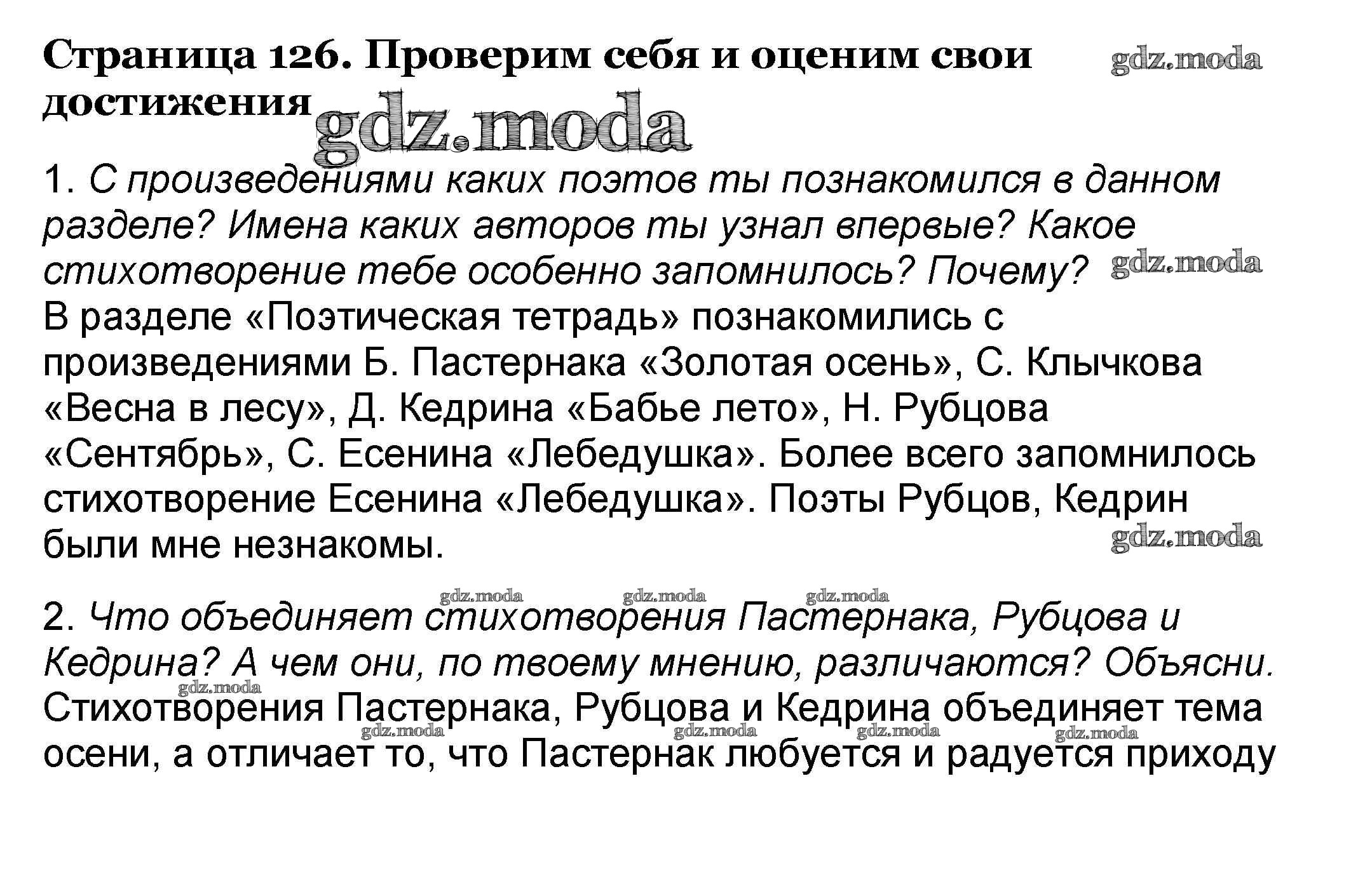 ГДЗ решение к заданию № 126 Литературное чтение 4 класс Климанова Л.Ф. Просвещение 2018 Часть 1, Часть 2 ФГОС бесплатно на гдз.мода!