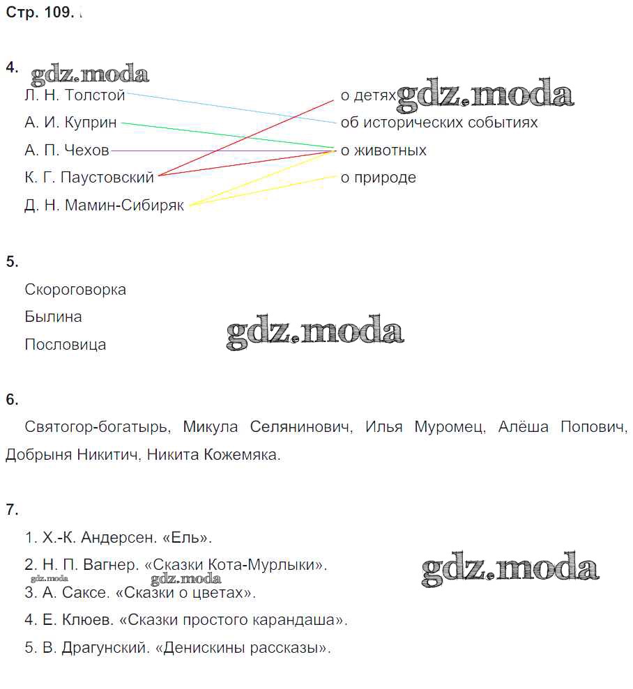 ГДЗ решение к заданию № 109 Литературное чтение 4 класс рабочая тетрадь Ефросинина Л.А. Вентана-граф 2020 Часть 1, Часть 2 ФГОС бесплатно на гдз.мода!