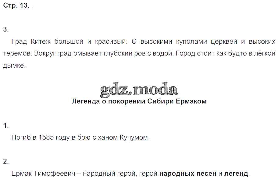 ОТВЕТ на задание № 13 Рабочая тетрадь по Литературе 4 класс Ефросинина Начальная школа XXI века
