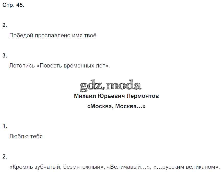 ГДЗ решение к заданию № 45 Литературное чтение 4 класс рабочая тетрадь Ефросинина Л.А. Вентана-граф 2020 Часть 1, Часть 2 ФГОС бесплатно на гдз.мода!