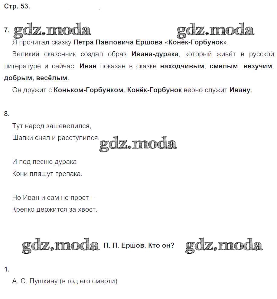 ГДЗ решение к заданию № 53 Литературное чтение 4 класс рабочая тетрадь Ефросинина Л.А. Вентана-граф 2020 Часть 1, Часть 2 ФГОС бесплатно на гдз.мода!