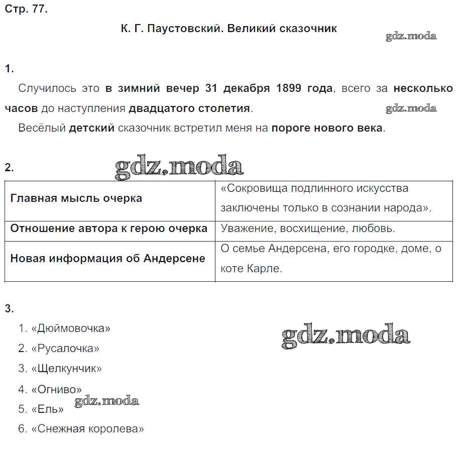 ГДЗ решение к заданию № 77 Литературное чтение 4 класс рабочая тетрадь Ефросинина Л.А. Вентана-граф 2020 Часть 1, Часть 2 ФГОС бесплатно на гдз.мода!