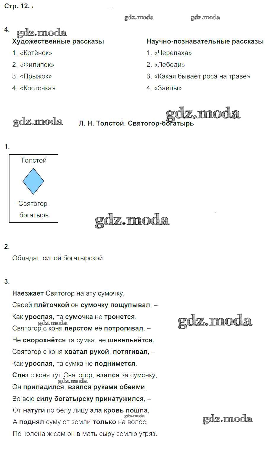 ГДЗ решение к заданию № 12 Литературное чтение 4 класс рабочая тетрадь Ефросинина Л.А. Вентана-граф 2020 Часть 1, Часть 2 ФГОС бесплатно на гдз.мода!
