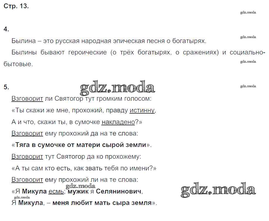 ОТВЕТ на задание № 13 Рабочая тетрадь по Литературе 4 класс Ефросинина Начальная школа XXI века