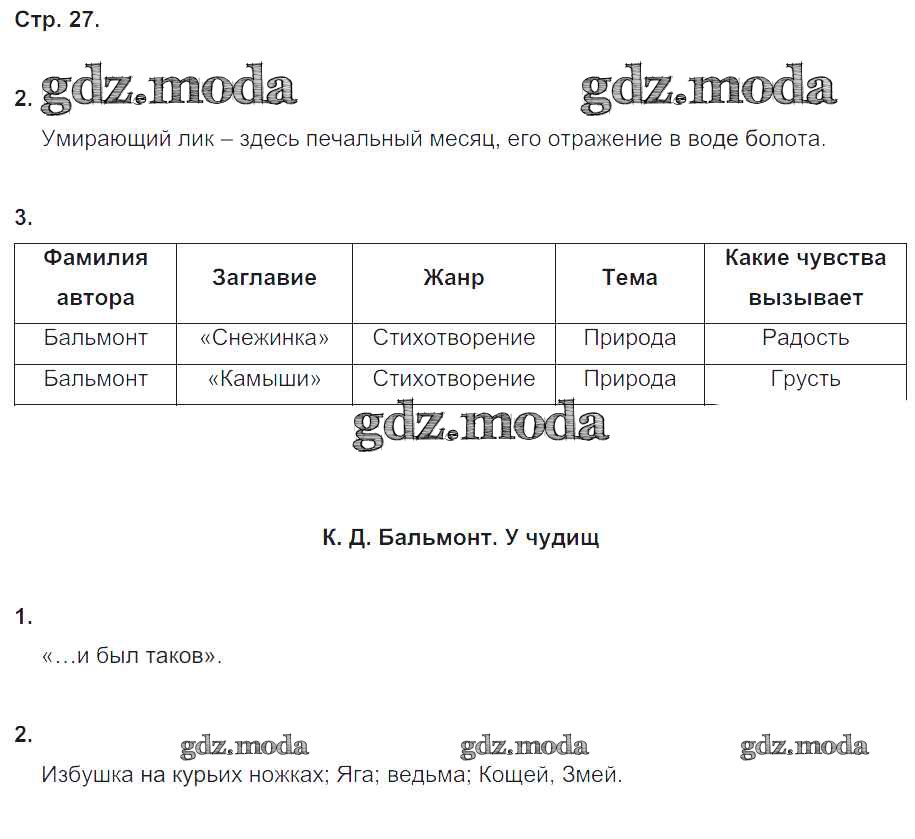 ГДЗ решение к заданию № 27 Литературное чтение 4 класс рабочая тетрадь Ефросинина Л.А. Вентана-граф 2020 Часть 1, Часть 2 ФГОС бесплатно на гдз.мода!