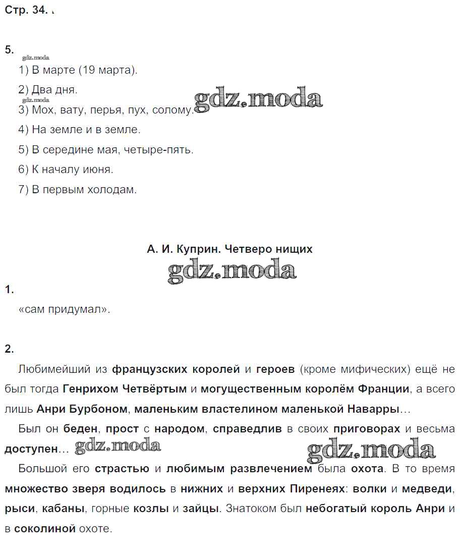 ГДЗ решение к заданию № 34 Литературное чтение 4 класс рабочая тетрадь Ефросинина Л.А. Вентана-граф 2020 Часть 1, Часть 2 ФГОС бесплатно на гдз.мода!