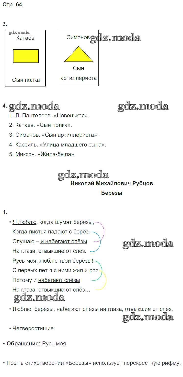 ГДЗ решение к заданию № 64 Литературное чтение 4 класс рабочая тетрадь Ефросинина Л.А. Вентана-граф 2020 Часть 1, Часть 2 ФГОС бесплатно на гдз.мода!