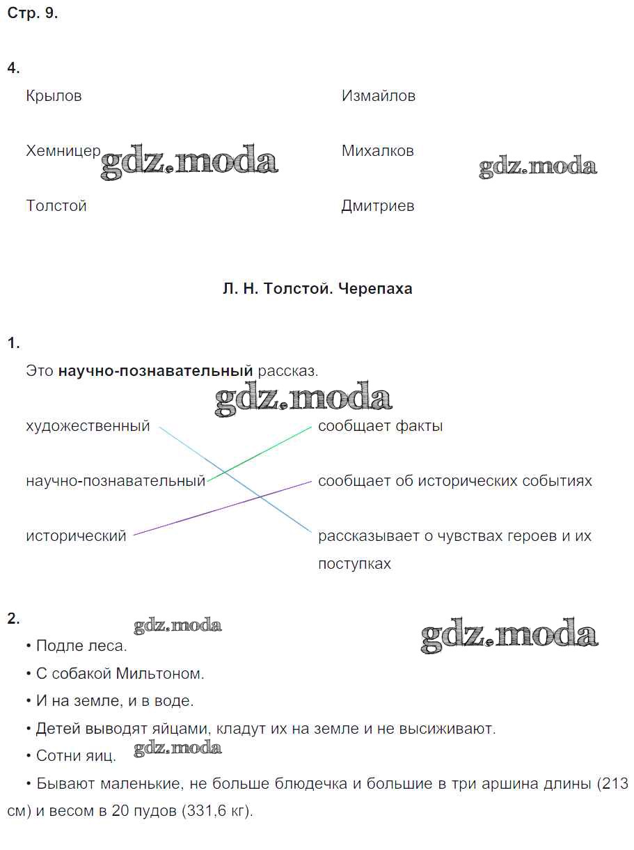 ГДЗ решение к заданию № 9 Литературное чтение 4 класс рабочая тетрадь Ефросинина Л.А. Вентана-граф 2020 Часть 1, Часть 2 ФГОС бесплатно на гдз.мода!
