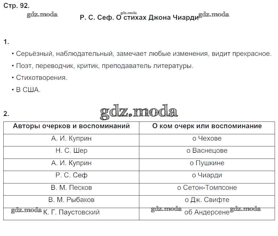 ГДЗ решение к заданию № 92 Литературное чтение 4 класс рабочая тетрадь Ефросинина Л.А. Вентана-граф 2020 Часть 1, Часть 2 ФГОС бесплатно на гдз.мода!
