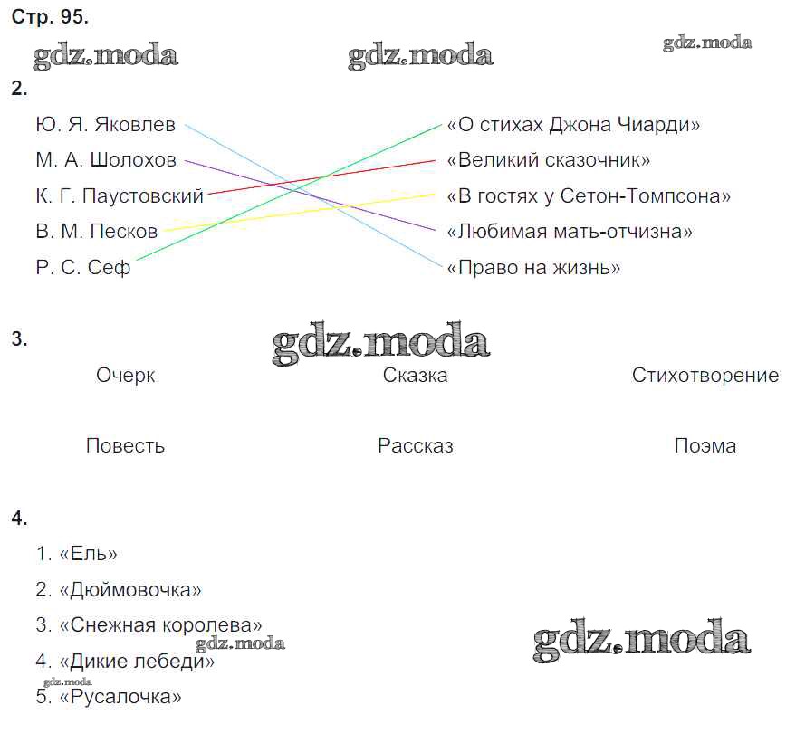 ГДЗ решение к заданию № 95 Литературное чтение 4 класс рабочая тетрадь Ефросинина Л.А. Вентана-граф 2020 Часть 1, Часть 2 ФГОС бесплатно на гдз.мода!