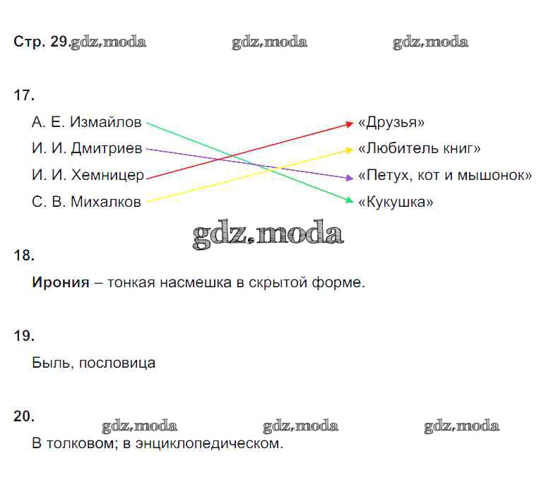 ГДЗ решение к заданию № 29 Литературное чтение 4 класс тетрадь для контрольных работ Ефросинина Л.А. Вентана-граф 2019 Часть 1, Часть 2 ФГОС бесплатно на гдз.мода!