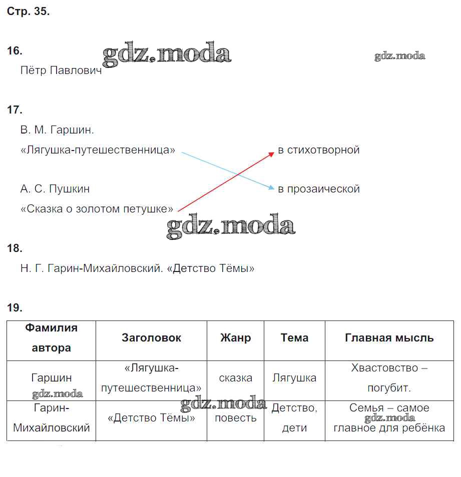 ГДЗ решение к заданию № 35 Литературное чтение 4 класс тетрадь для контрольных работ Ефросинина Л.А. Вентана-граф 2019 Часть 1, Часть 2 ФГОС бесплатно на гдз.мода!