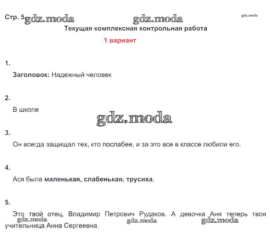 ГДЗ решение к заданию № 5 Литературное чтение 4 класс тетрадь для контрольных работ Ефросинина Л.А. Вентана-граф 2019 Часть 1, Часть 2 ФГОС бесплатно на гдз.мода!