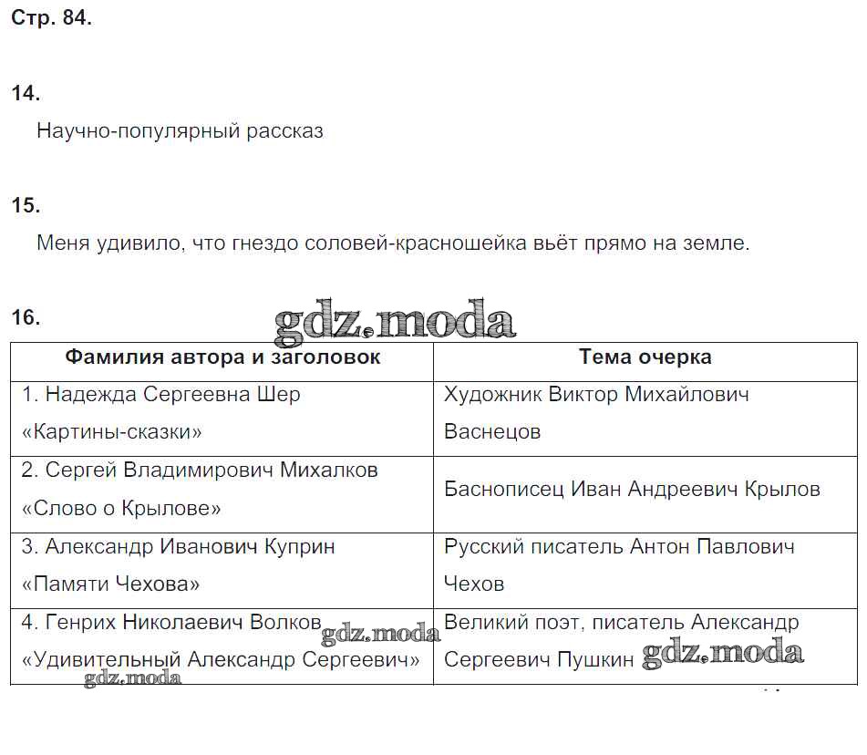 ГДЗ решение к заданию № 84 Литературное чтение 4 класс тетрадь для контрольных работ Ефросинина Л.А. Вентана-граф 2019 Часть 1, Часть 2 ФГОС бесплатно на гдз.мода!