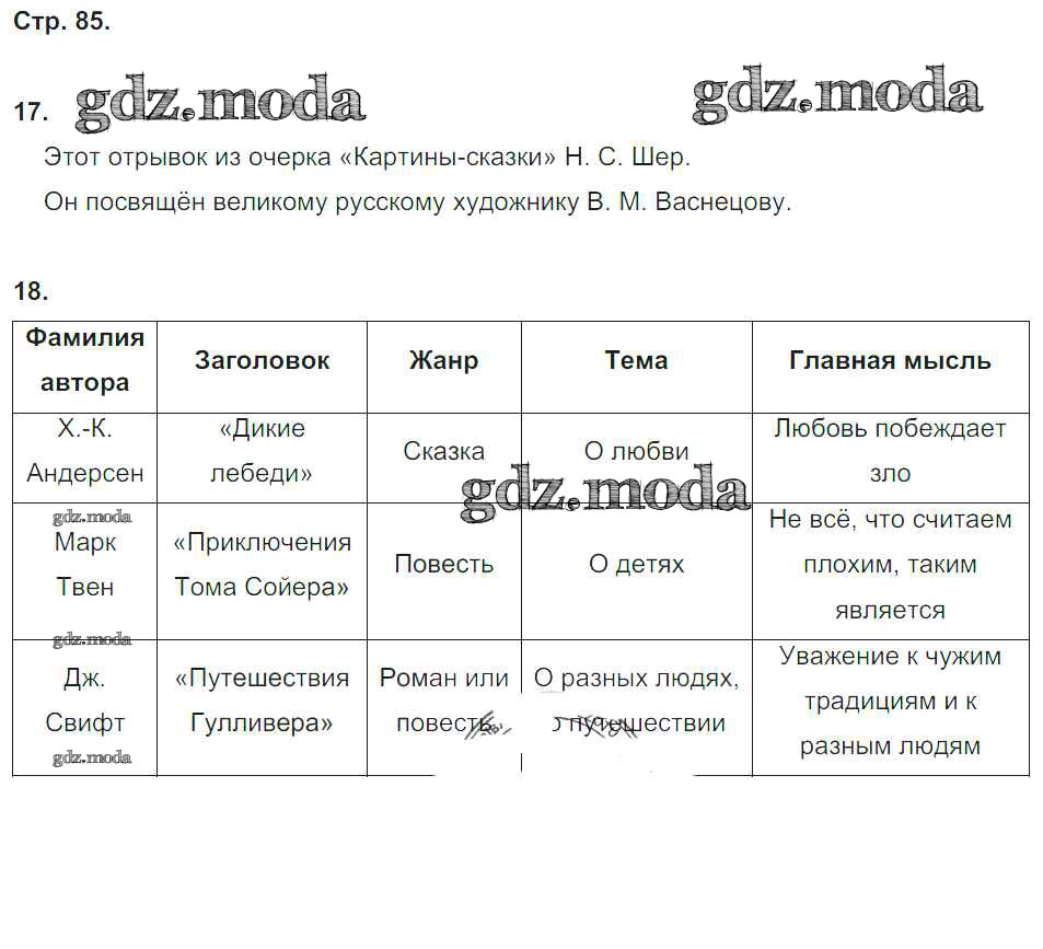 ГДЗ решение к заданию № 85 Литературное чтение 4 класс тетрадь для контрольных работ Ефросинина Л.А. Вентана-граф 2019 Часть 1, Часть 2 ФГОС бесплатно на гдз.мода!