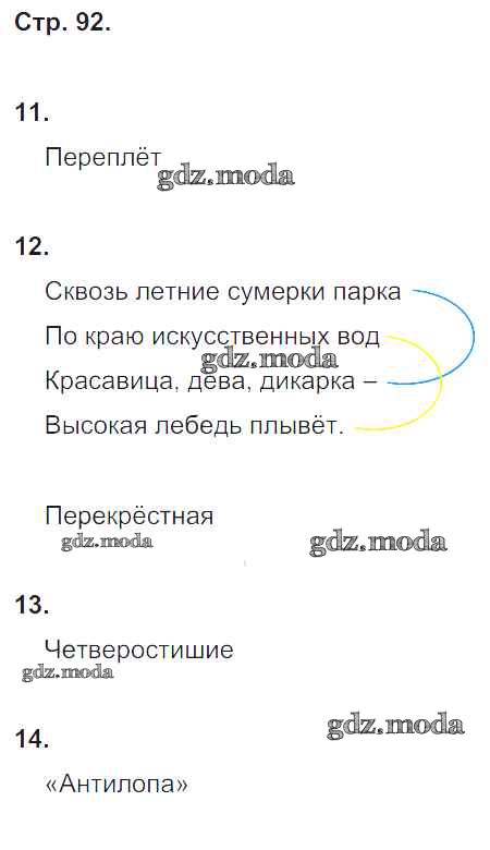 ГДЗ решение к заданию № 92 Литературное чтение 4 класс тетрадь для контрольных работ Ефросинина Л.А. Вентана-граф 2019 Часть 1, Часть 2 ФГОС бесплатно на гдз.мода!