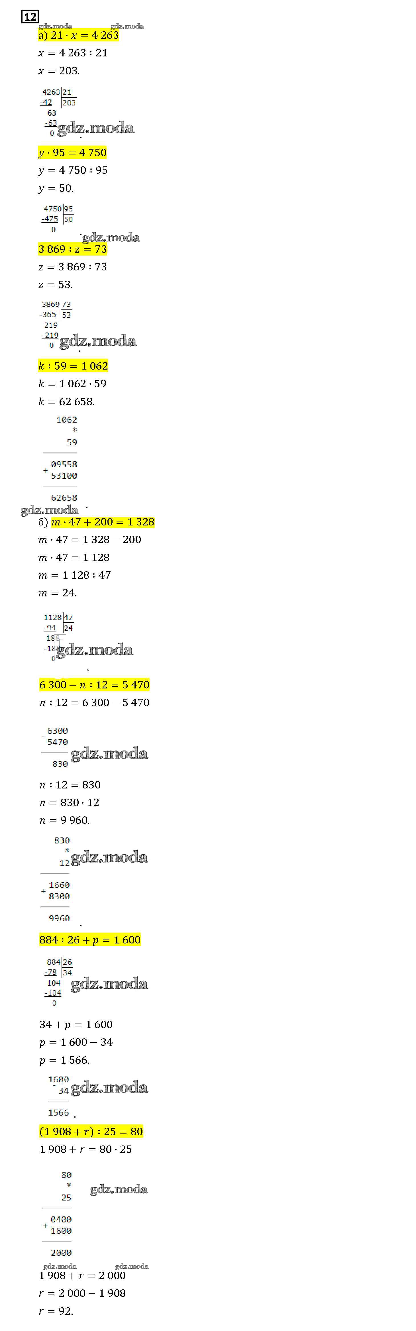 ОТВЕТ на задание № 12 Учебник по Математике 4 класс Башмаков Планета знаний