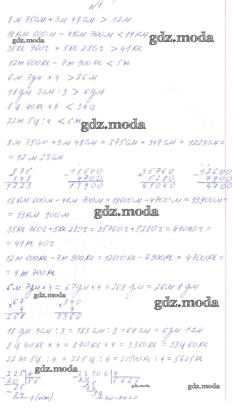 ОТВЕТ на задание № 1 Учебник по Математике 4 класс Башмаков Планета знаний