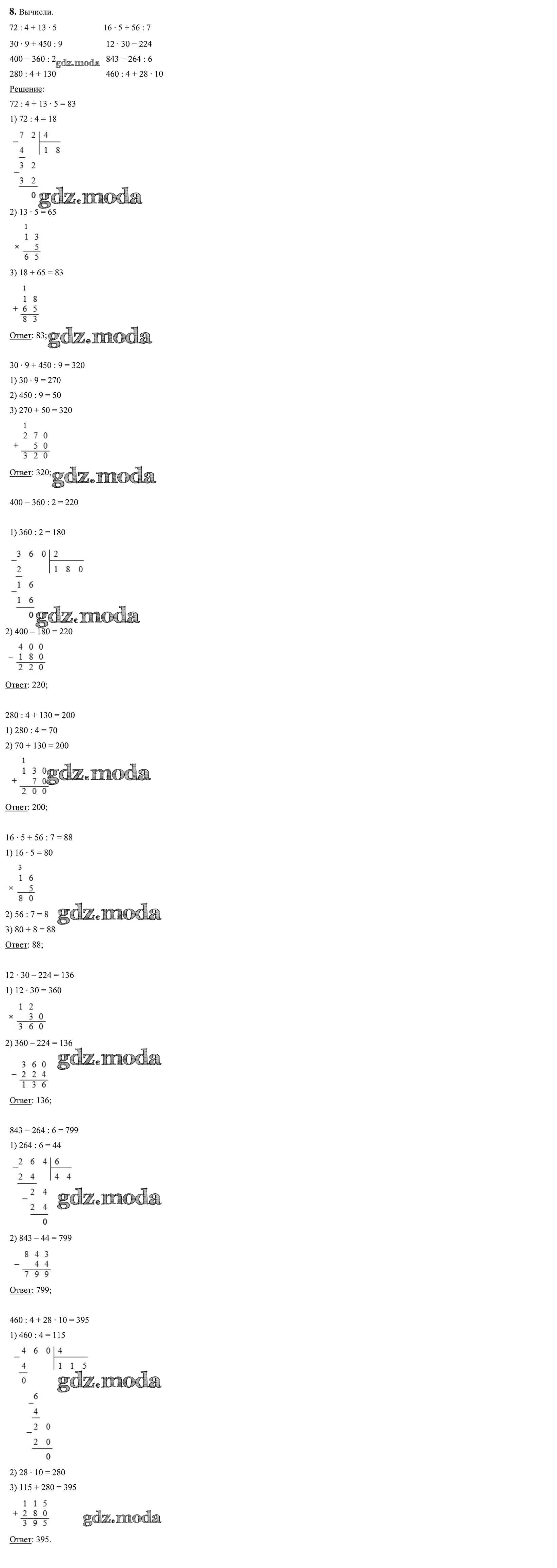 ГДЗ решение к заданию № 8 Математика 4 класс Чеботаревская Т.М. Начальная школа 2018 Часть 1, Часть 2 бесплатно на гдз.мода!