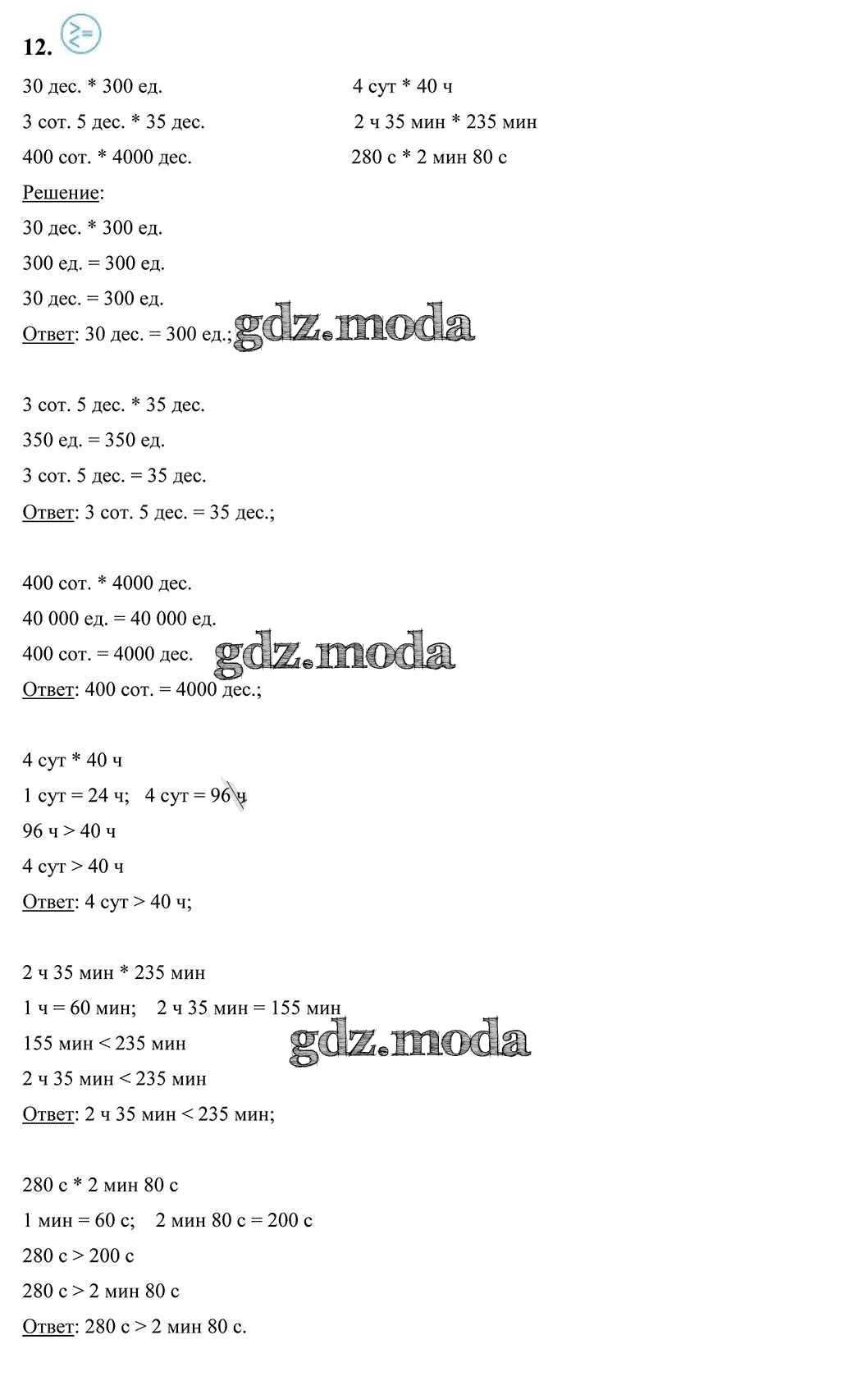 ГДЗ решение к заданию № 12 Математика 4 класс Чеботаревская Т.М. Начальная школа 2018 Часть 1, Часть 2 бесплатно на гдз.мода!