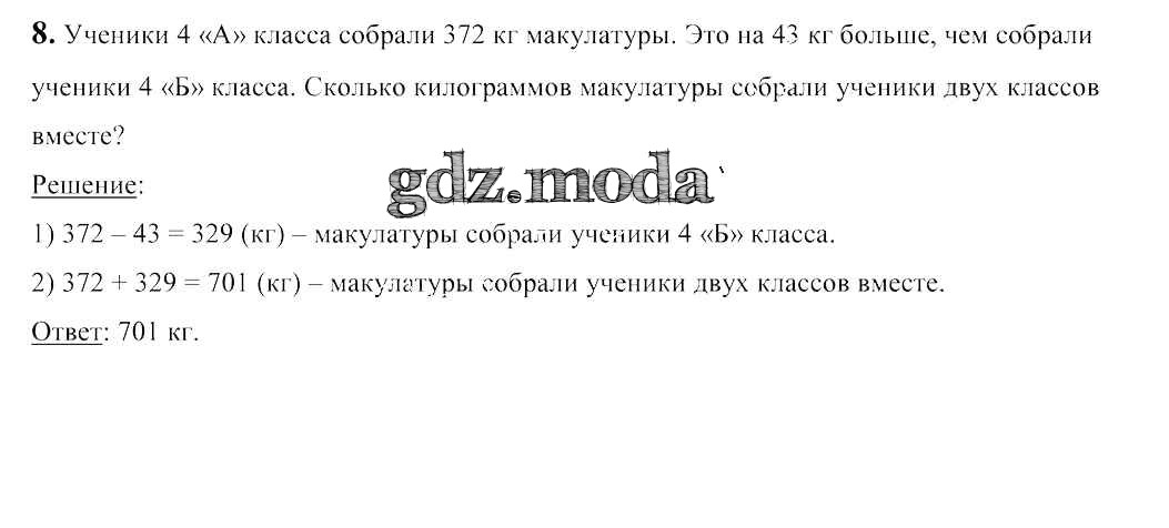 ГДЗ решение к заданию № 8 Математика 4 класс Чеботаревская Т.М. Начальная школа 2018 Часть 1, Часть 2 бесплатно на гдз.мода!