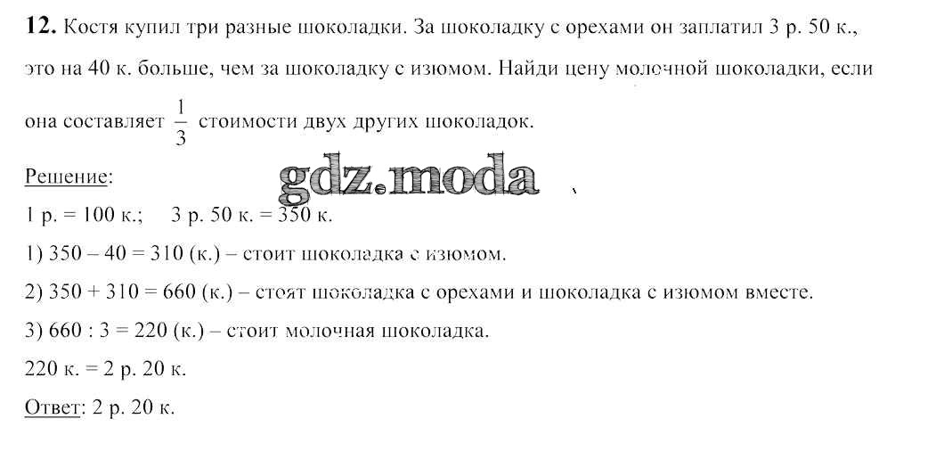 ОТВЕТ на задание № 12 Учебник по Математике 4 класс Чеботаревская