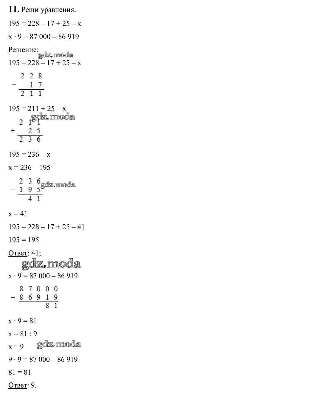 ОТВЕТ на задание № 11 Учебник по Математике 4 класс Чеботаревская