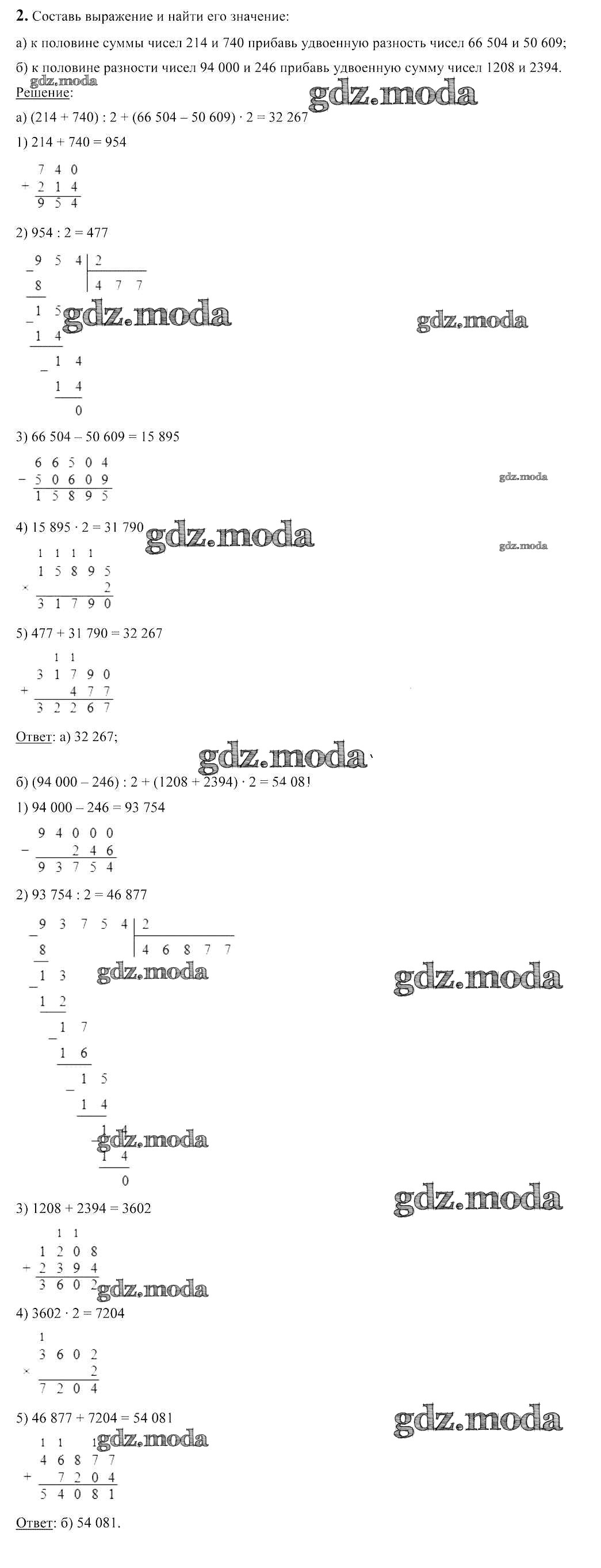 ГДЗ решение к заданию № 2 Математика 4 класс Чеботаревская Т.М. Начальная школа 2018 Часть 1, Часть 2 бесплатно на гдз.мода!