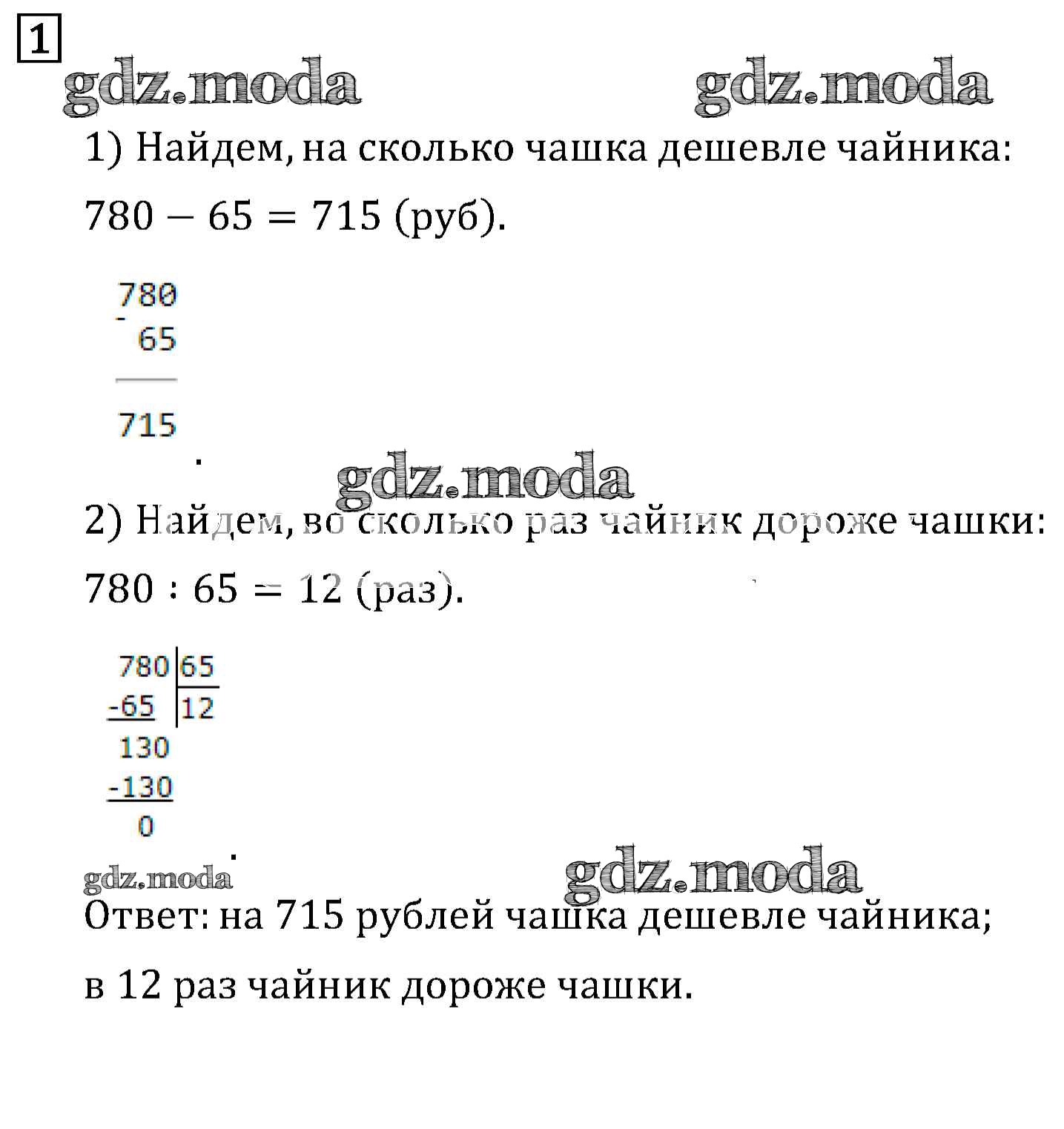 ОТВЕТ на задание № 1 Учебник по Математике 4 класс Дорофеев Перспектива