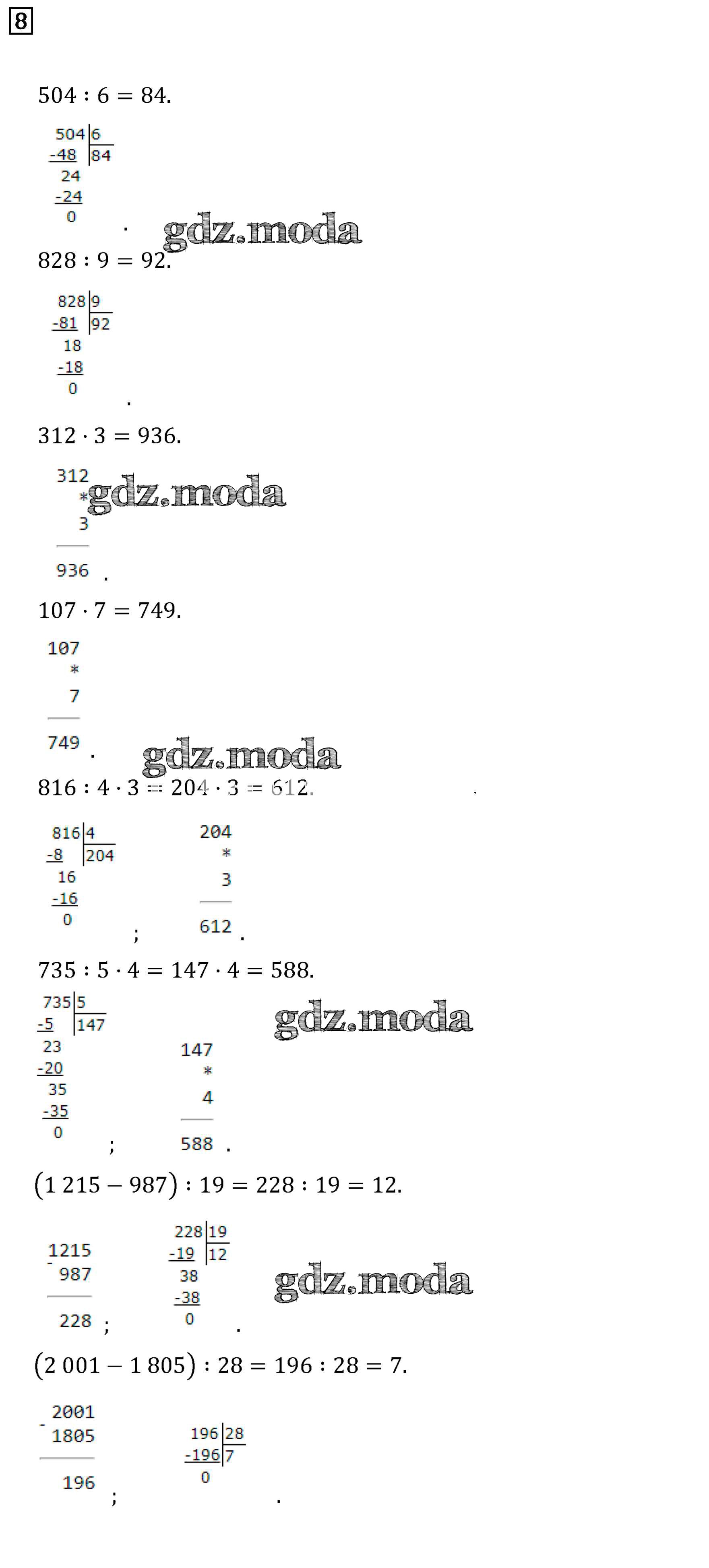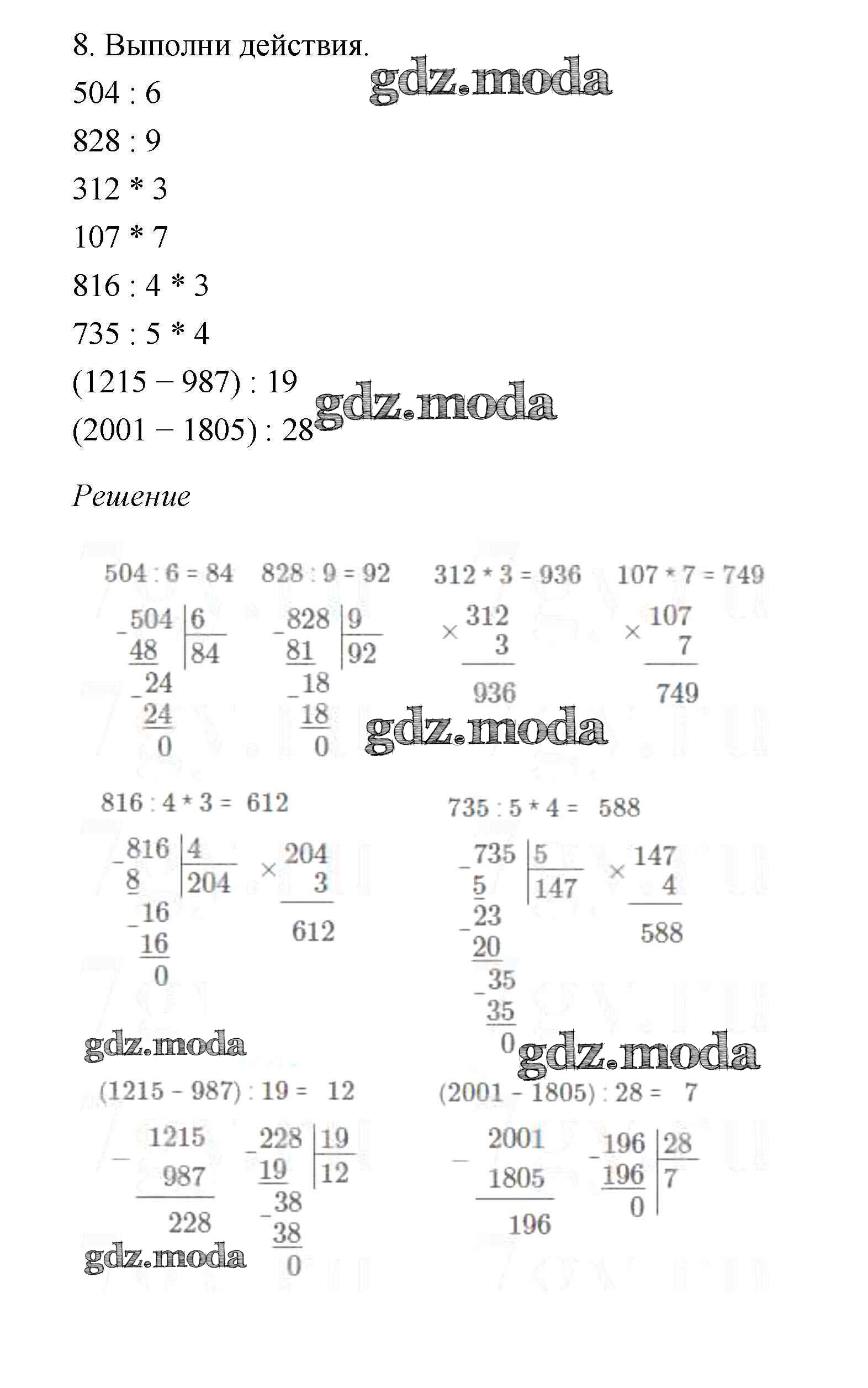 ОТВЕТ на задание № 8 Учебник по Математике 4 класс Дорофеев Перспектива