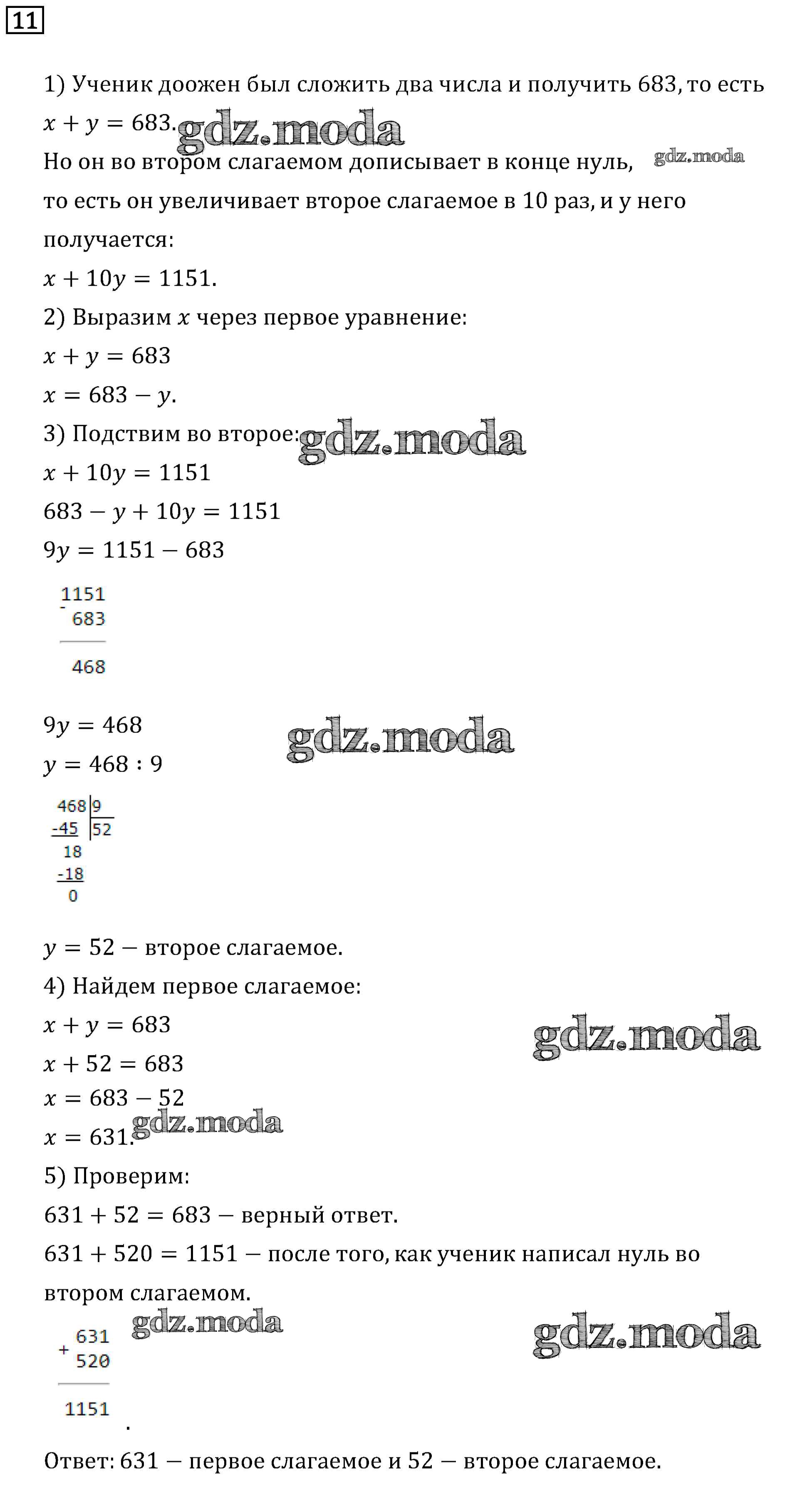 ОТВЕТ на задание № 11 Учебник по Математике 4 класс Дорофеев Перспектива