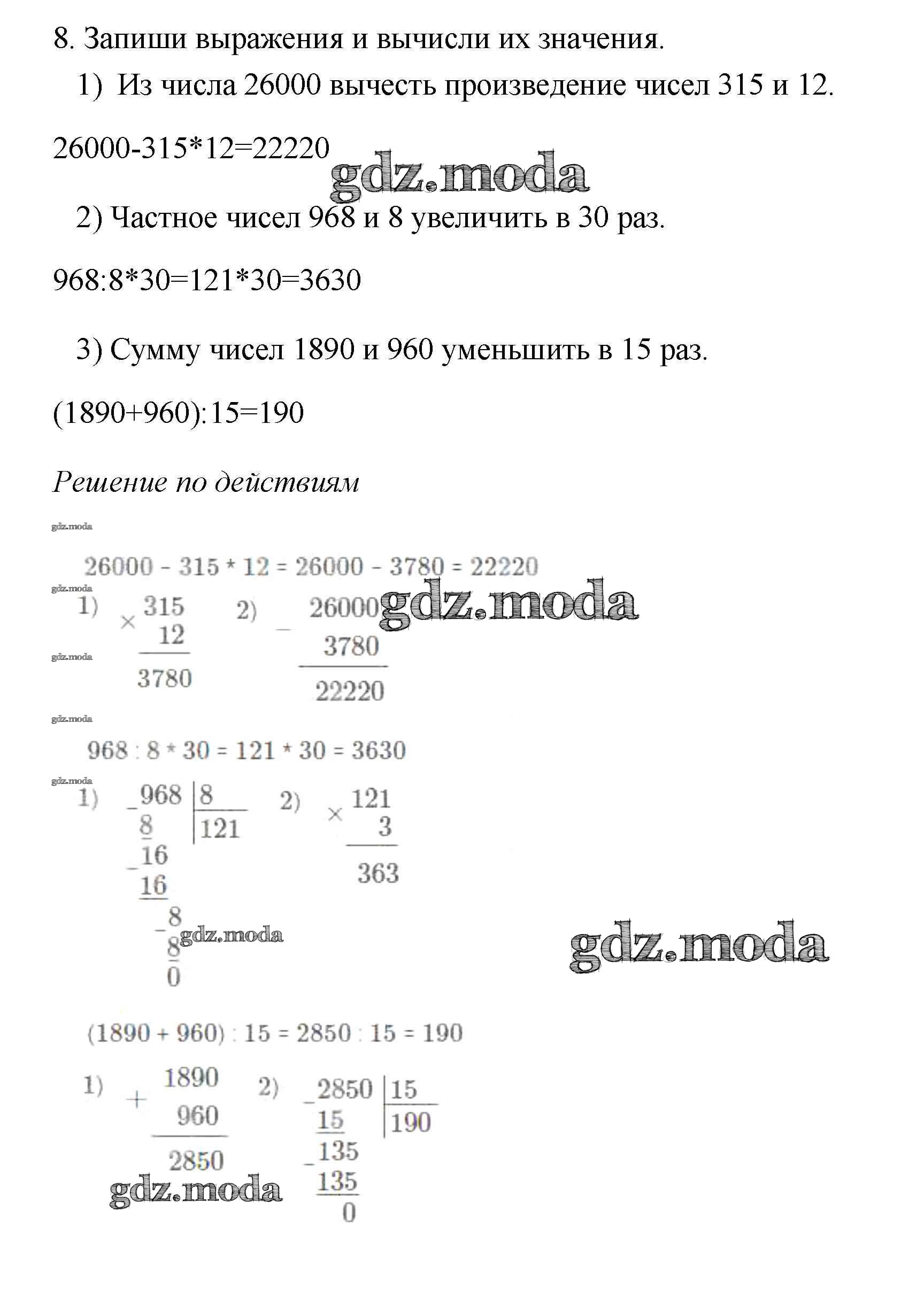 ОТВЕТ на задание № 8 Учебник по Математике 4 класс Дорофеев Перспектива