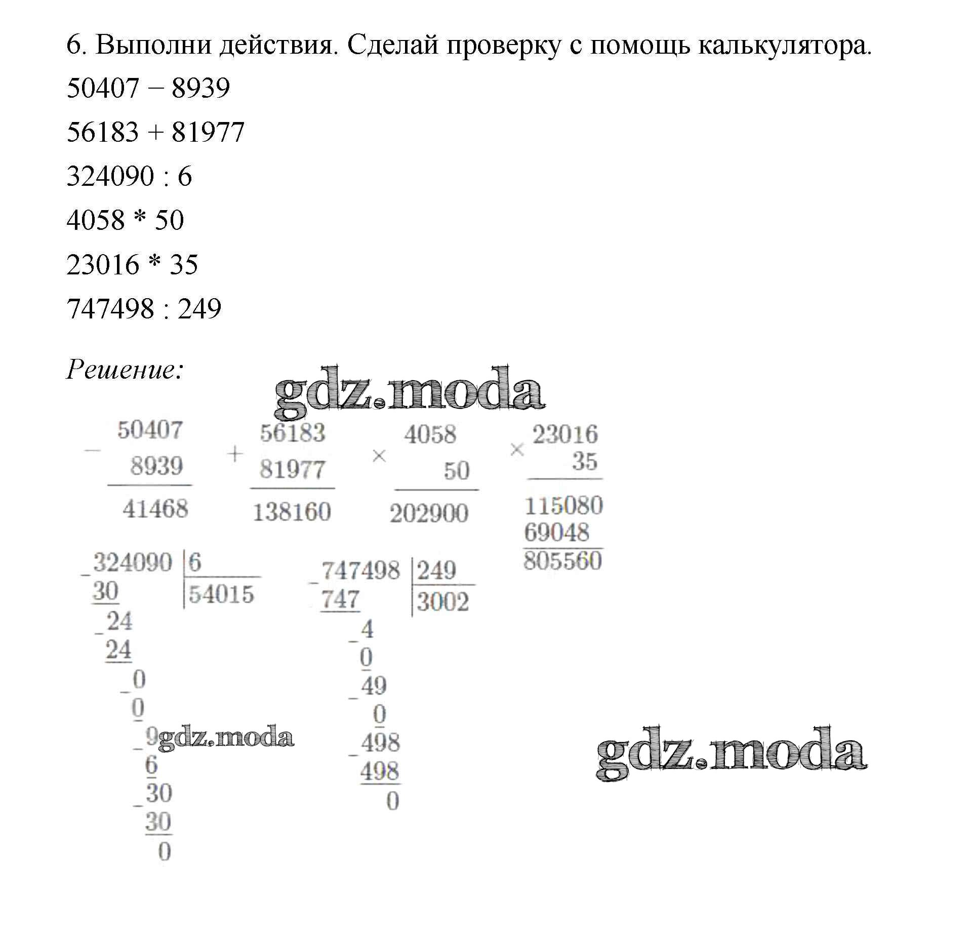 ОТВЕТ на задание № 6 Учебник по Математике 4 класс Дорофеев Перспектива