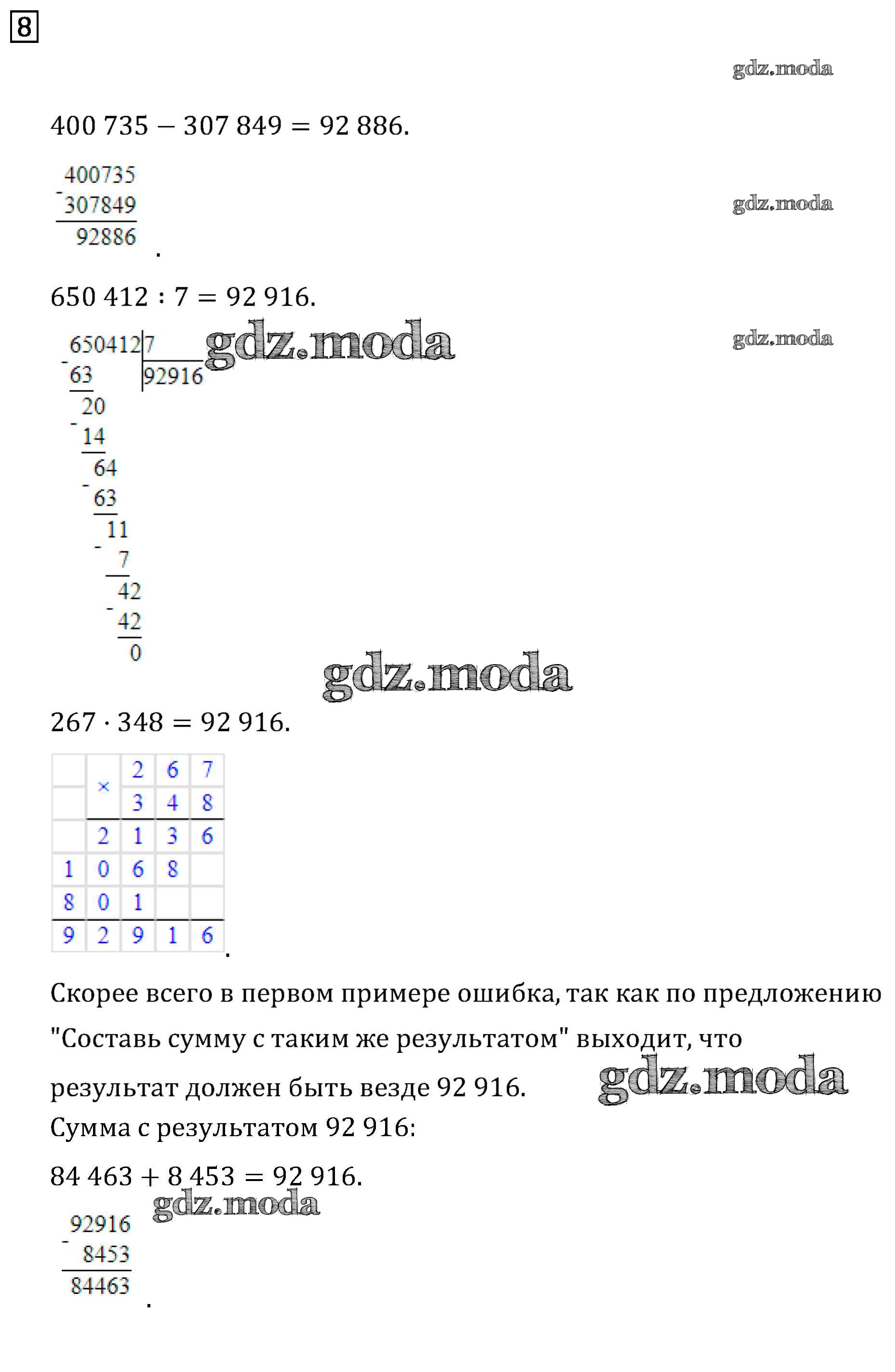 ОТВЕТ на задание № 8 Учебник по Математике 4 класс Дорофеев Перспектива
