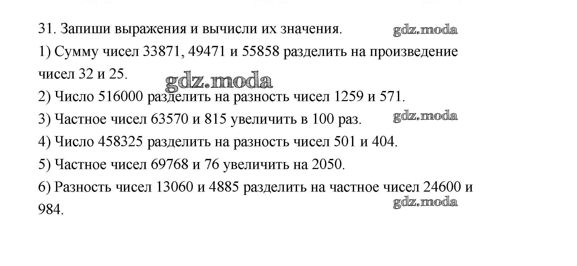 ОТВЕТ на задание № 31 Учебник по Математике 4 класс Дорофеев Перспектива