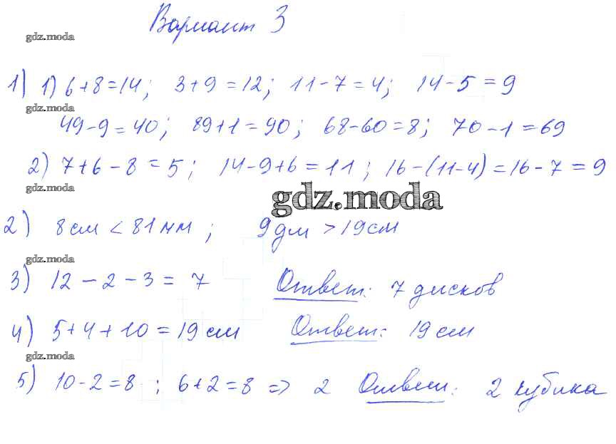 ОТВЕТ на задание № Вариант 3 Контрольные работы по Математике 2-4 класс Волкова Школа России