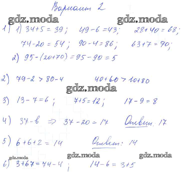 ОТВЕТ на задание № Вариант 2 Контрольные работы по Математике 2-4 класс Волкова Школа России