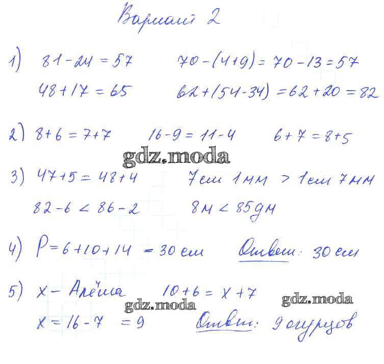 ОТВЕТ на задание № Вариант 2 Контрольные работы по Математике 2-4 класс Волкова Школа России