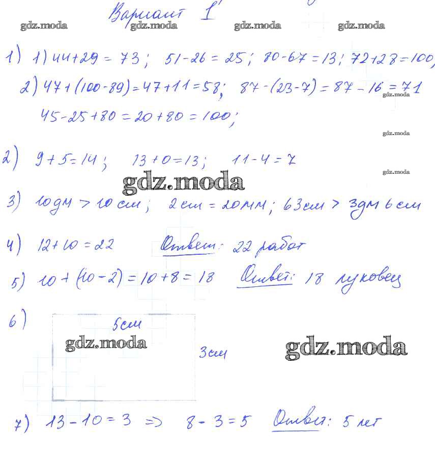 ОТВЕТ на задание № Вариант 1 Контрольные работы по Математике 2-4 класс Волкова Школа России