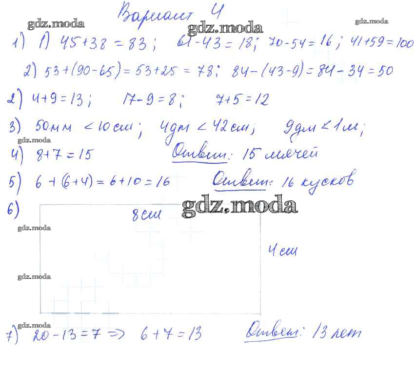 ОТВЕТ на задание № Вариант 4 Контрольные работы по Математике 2-4 класс Волкова Школа России