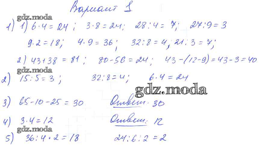 ОТВЕТ на задание № Вариант 1 Контрольные работы по Математике 2-4 класс Волкова Школа России