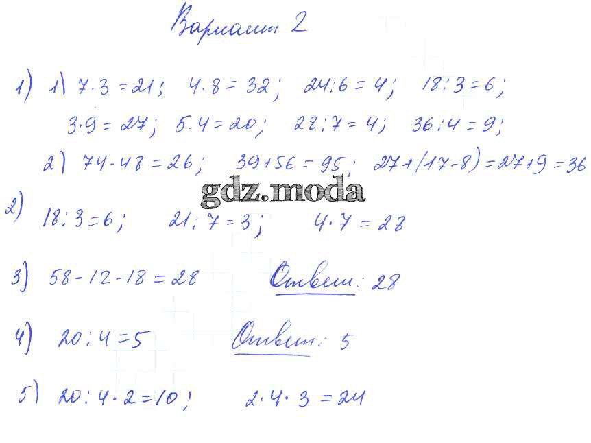 ОТВЕТ на задание № Вариант 2 Контрольные работы по Математике 2-4 класс Волкова Школа России