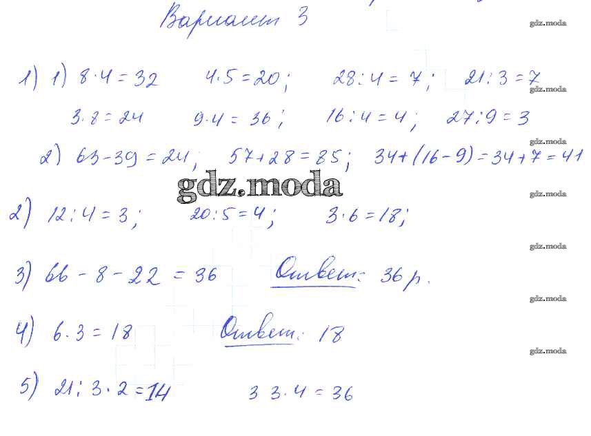 ОТВЕТ на задание № Вариант 3 Контрольные работы по Математике 2-4 класс Волкова Школа России